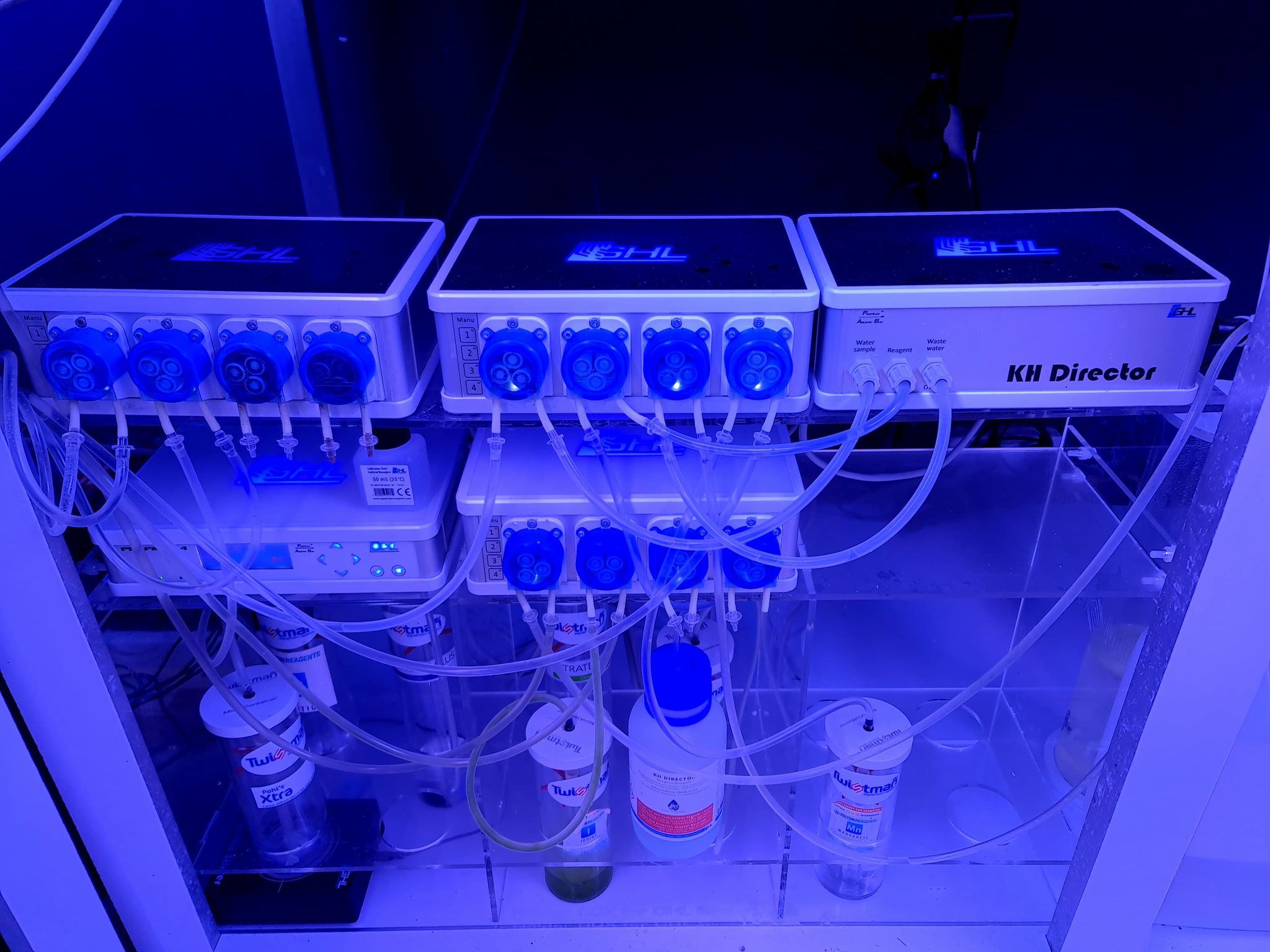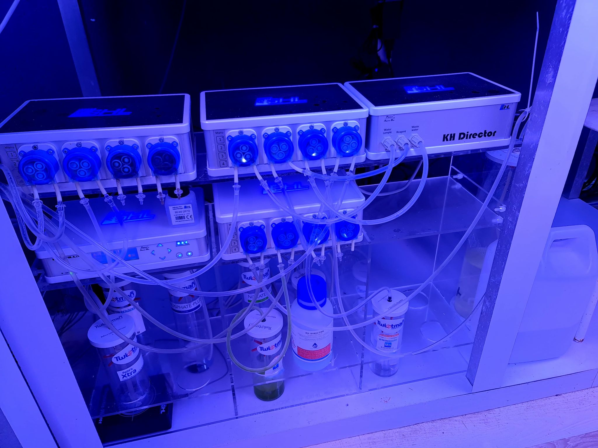 Na stojaku swobodnie zmieści się większość sprzętu takiego jak sterownik główny Profilux, KH Director, pompy dozujące wraz z możliwością umieszczenia 12 mieszaczy magnetycznych i pojemników na preparaty MicroContainer.