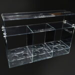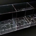 Konstrukcja stojaka jest stabilna, wykonana z mocnego i grubego akrylu, ze wzmocnieniami w punktach newralgicznych i posiada polerowane krawędzie.