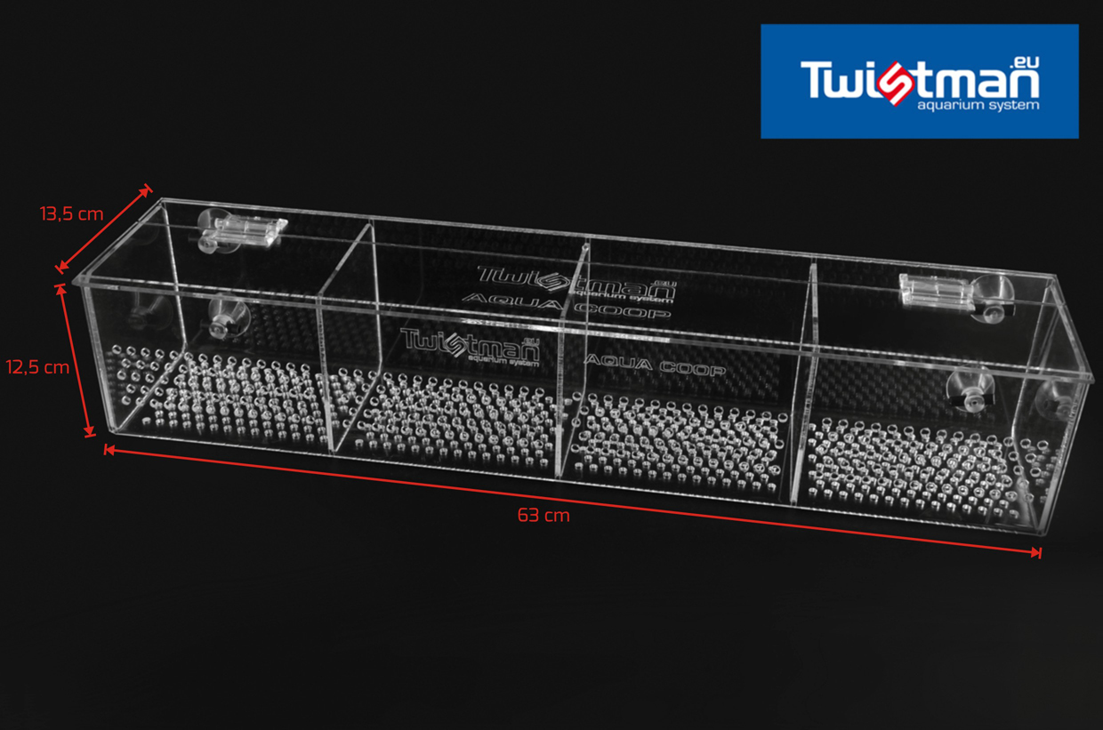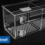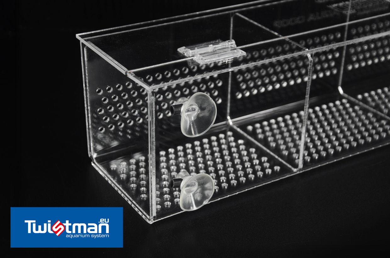 Wykonany z najwyższej jakości szkła akrylowego, składający się z czterech sekcji kojec umożliwiający bardzo łatwe i szybkie odizolowanie, lub przetrzymanie danego osobnika np. w celu sprzedaży lub wyizolowanej hodowli.