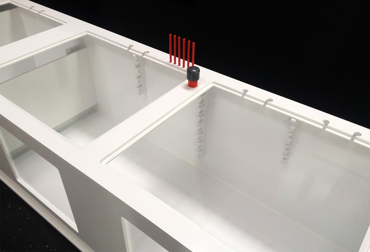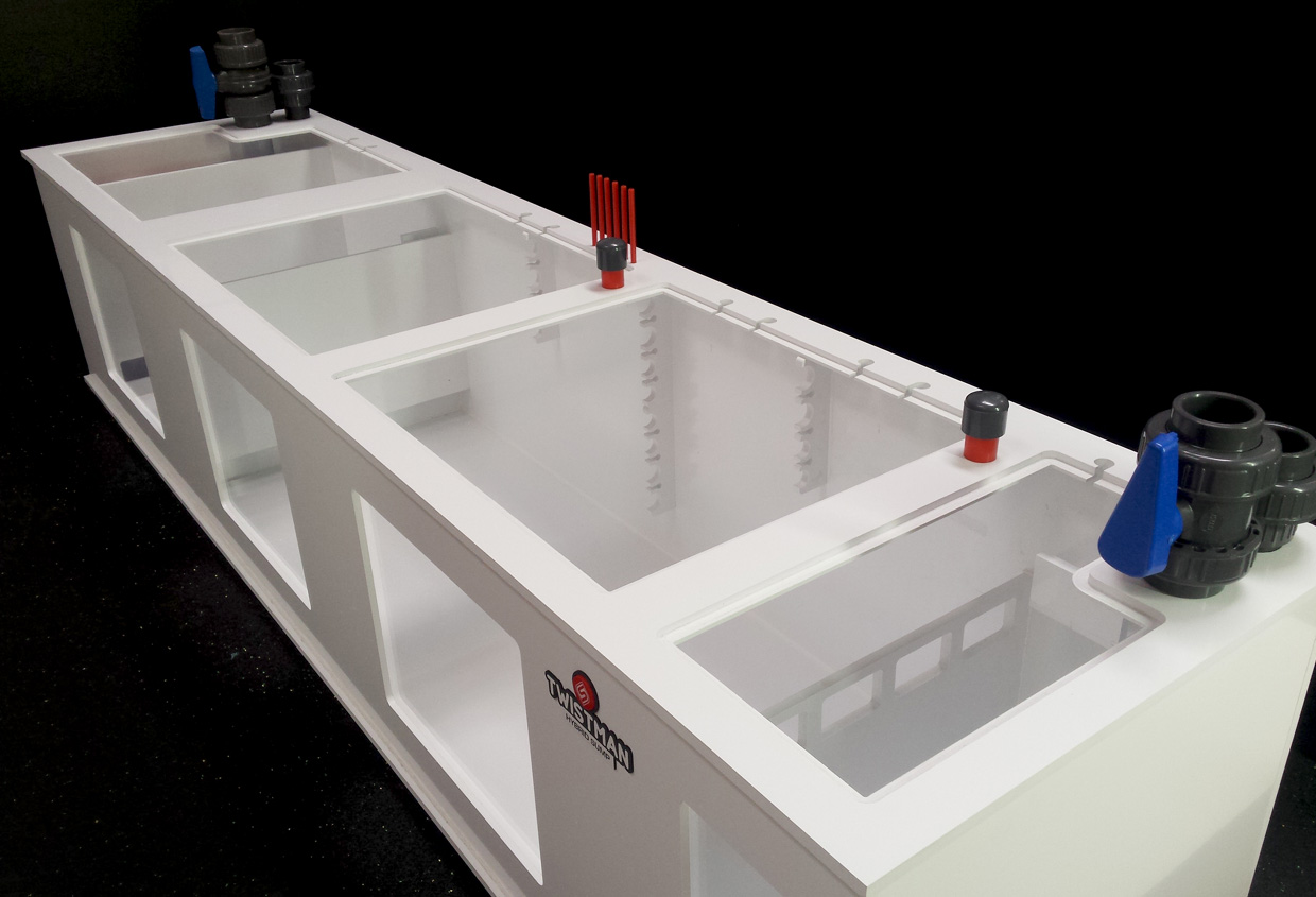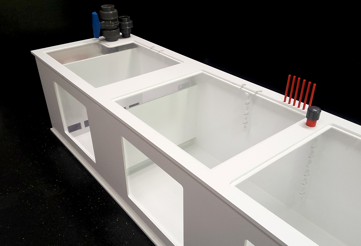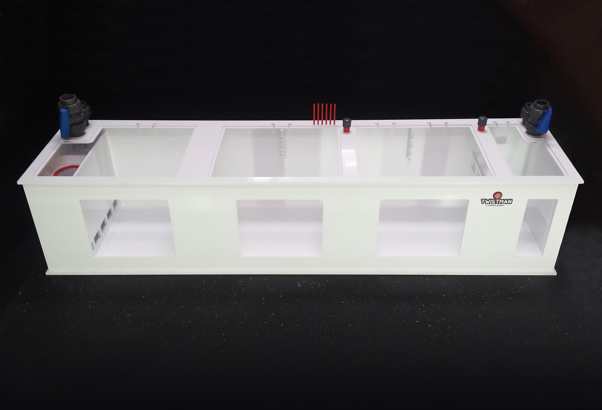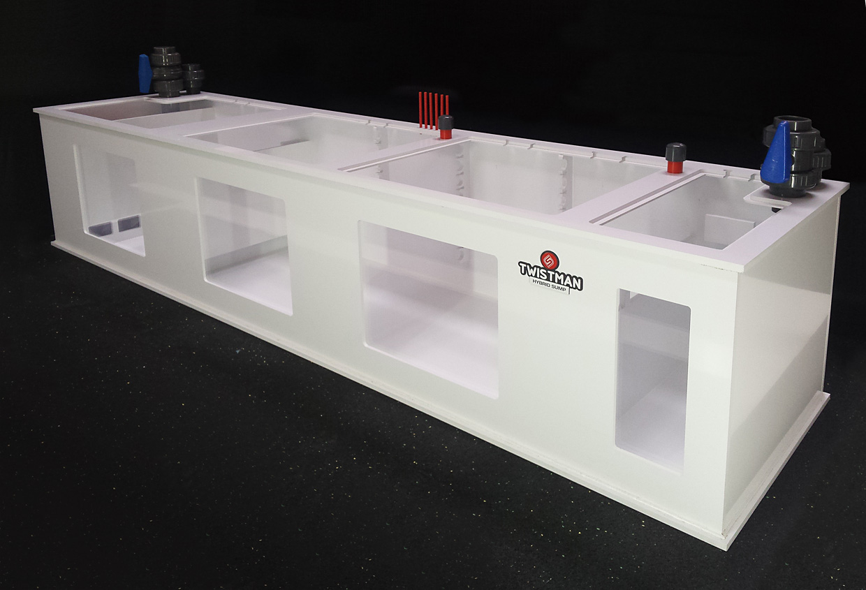Hybrydowy zbiornik techniczny HYBRID SUMP 185x47x40 o pojemności całkowitej brutto 300L, przeznaczony do akwarii o pojemności do 800-1200 litrów.