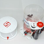 Zdjęcie kubka umożliwia łatwy dostęp do rury reakcyjnej więc podstawowe czyszczenie skimmera jest możliwe bez jego rozkręcania.