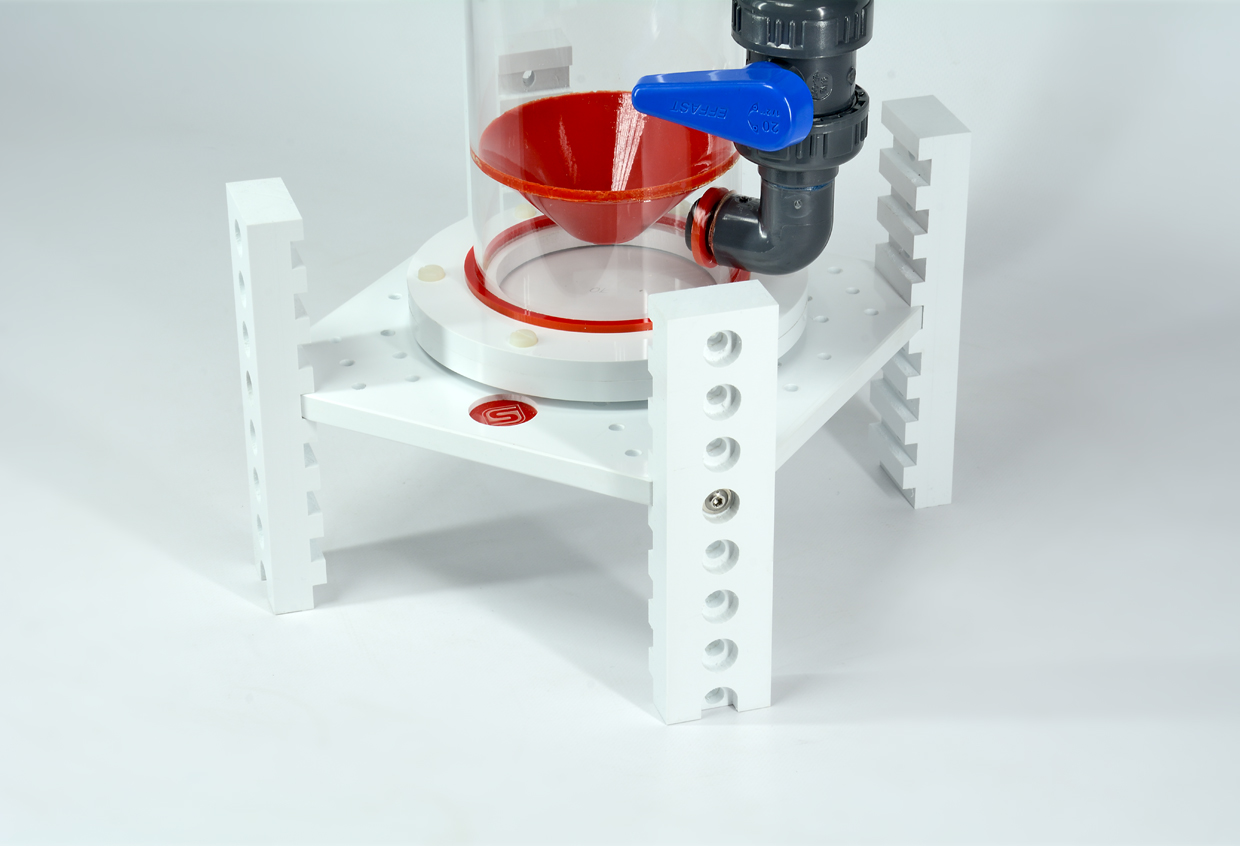 Solidna podstawa z regulacją wysokości pod sprzęt akwariowy, który wymaga podniesienia (np. skimmer, BioReaktor) Podstawa zaprojektowana w ten sposób aby była maksymalnie sztywna i bezpieczna w użytkowaniu.
